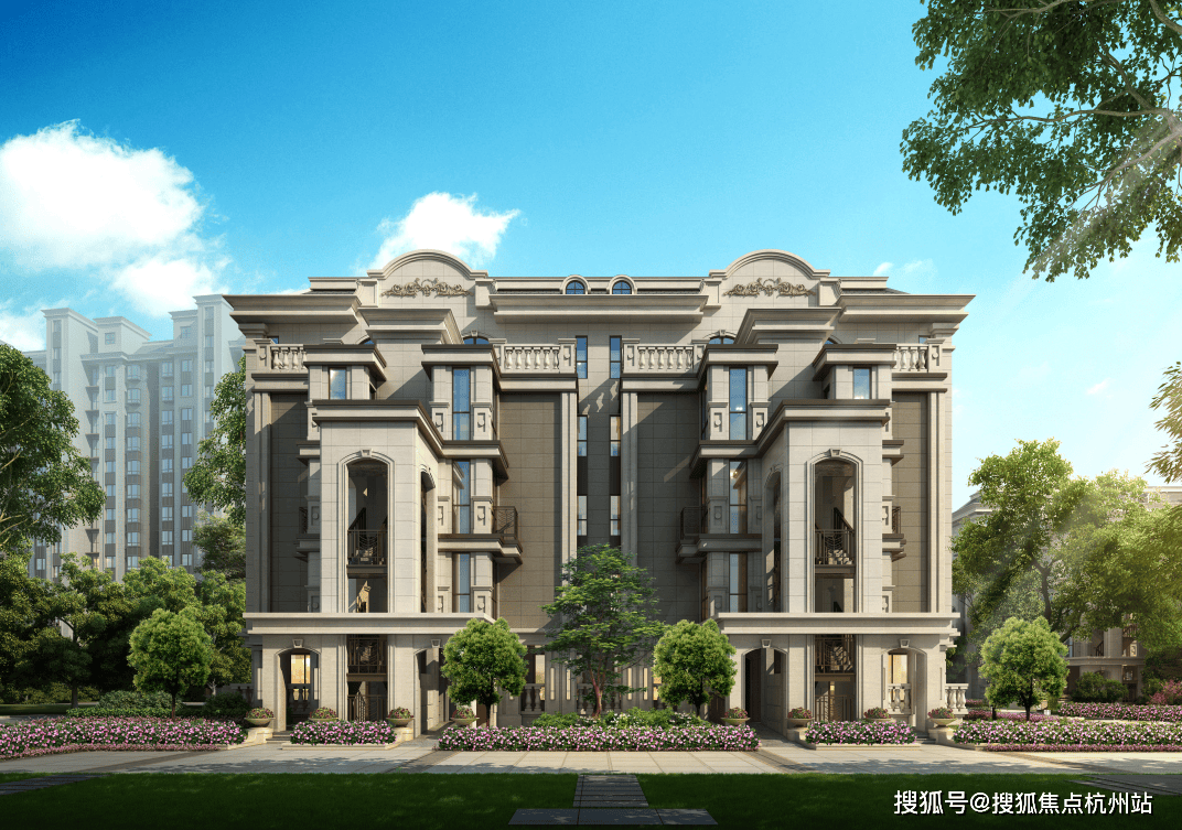 项目按照古典法度气概设想,使用黄金朋分比例淬炼建建外不雅,衬以山花、拱廊、石柱、铁艺灯等细节,凸起轴线和对称美感。
